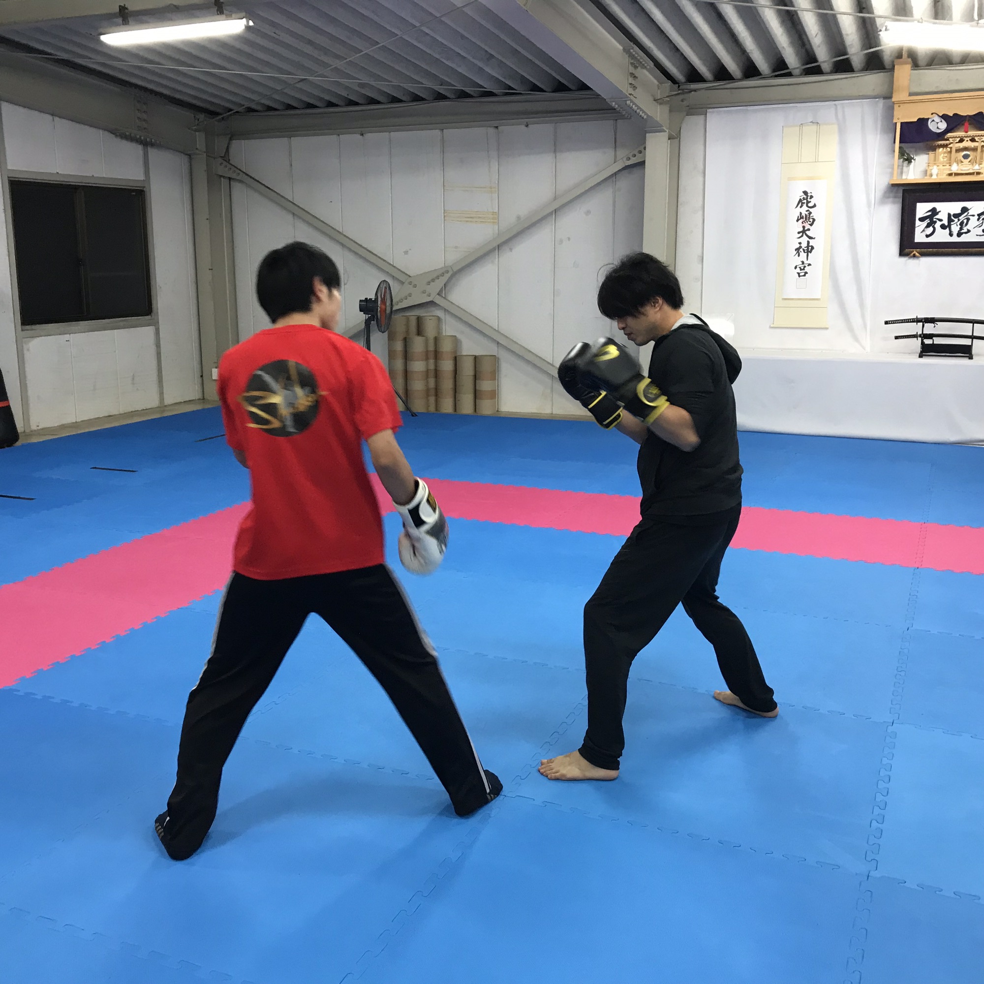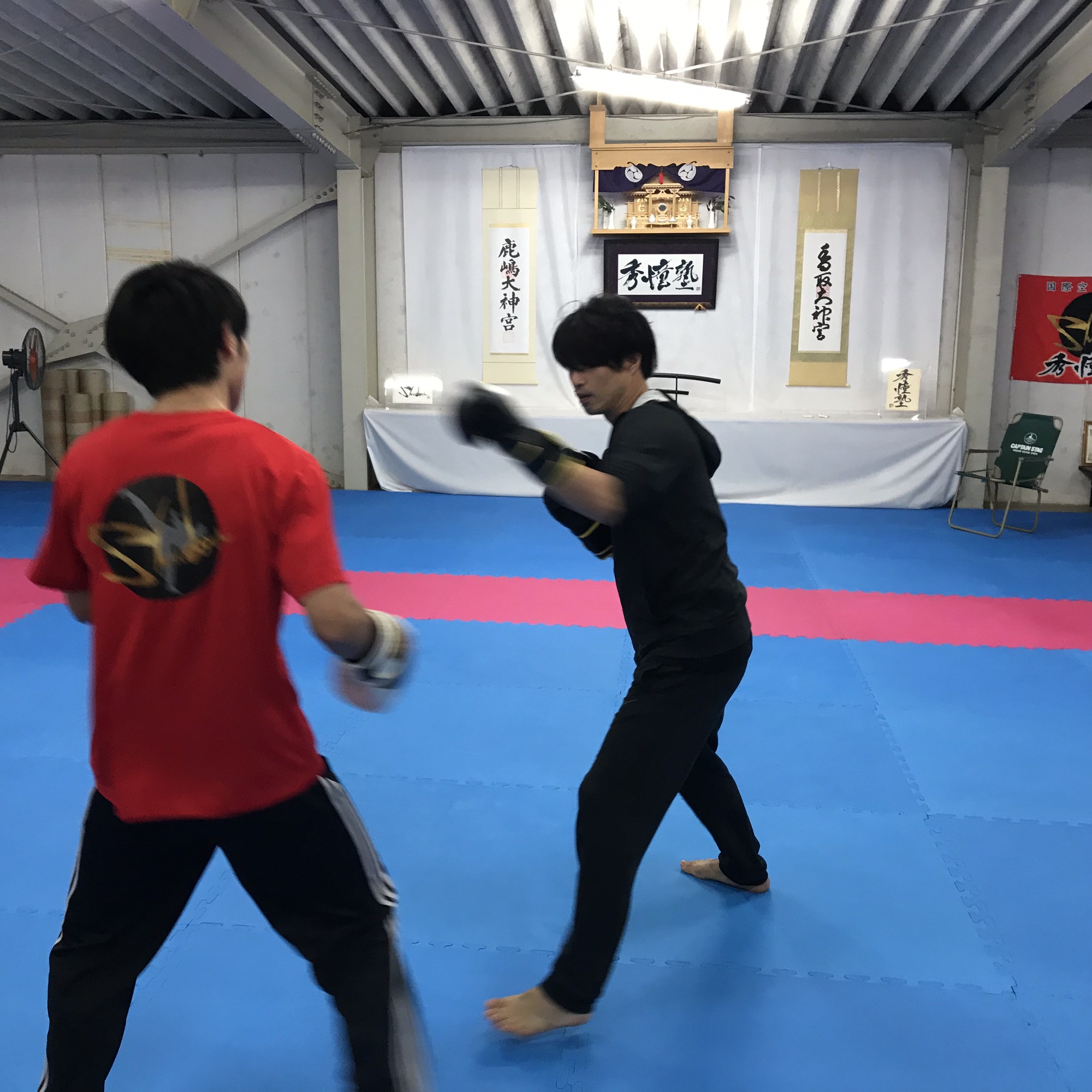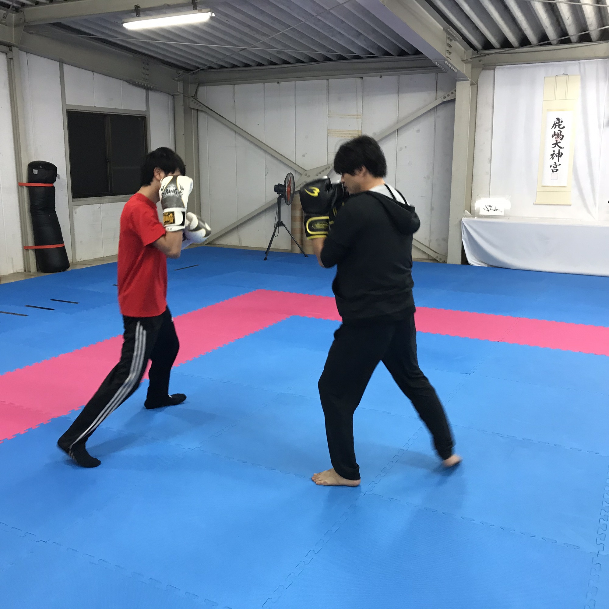 で!なぜかキックボクシングをして