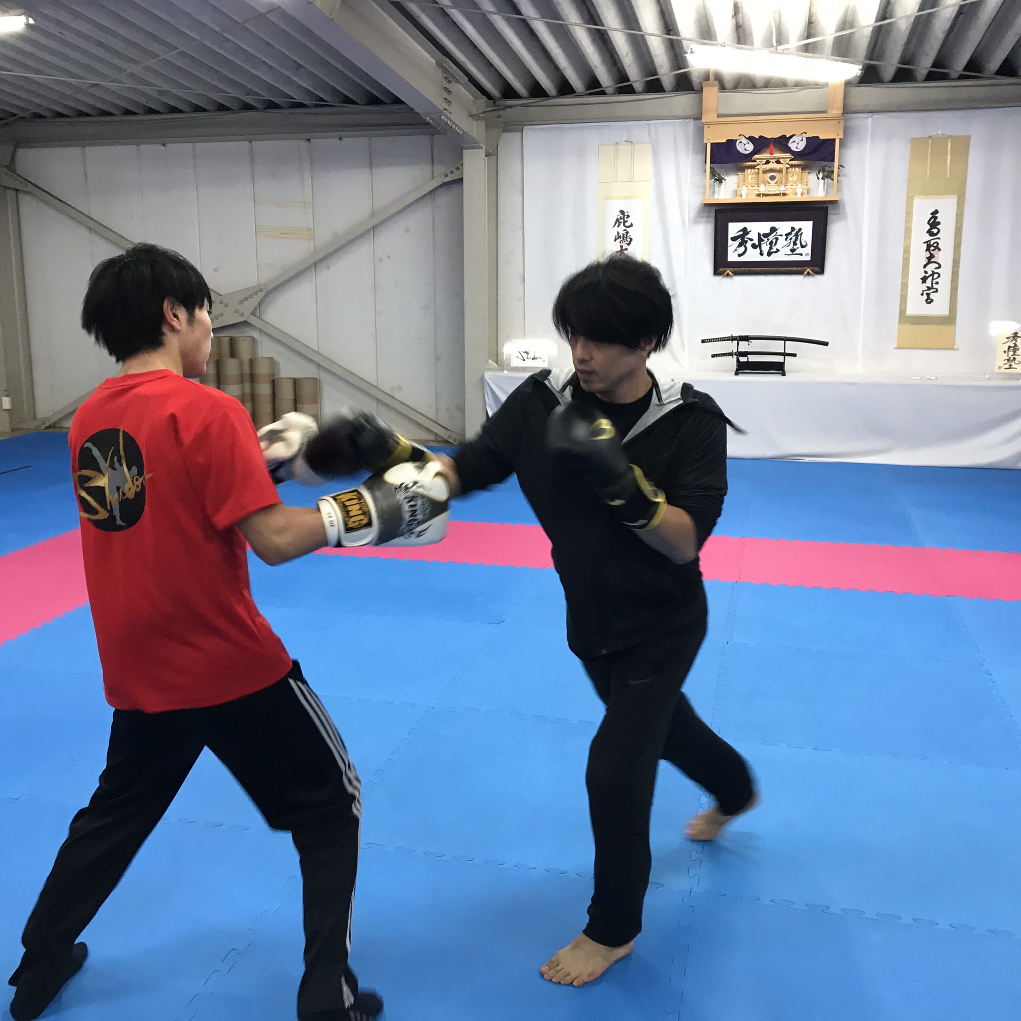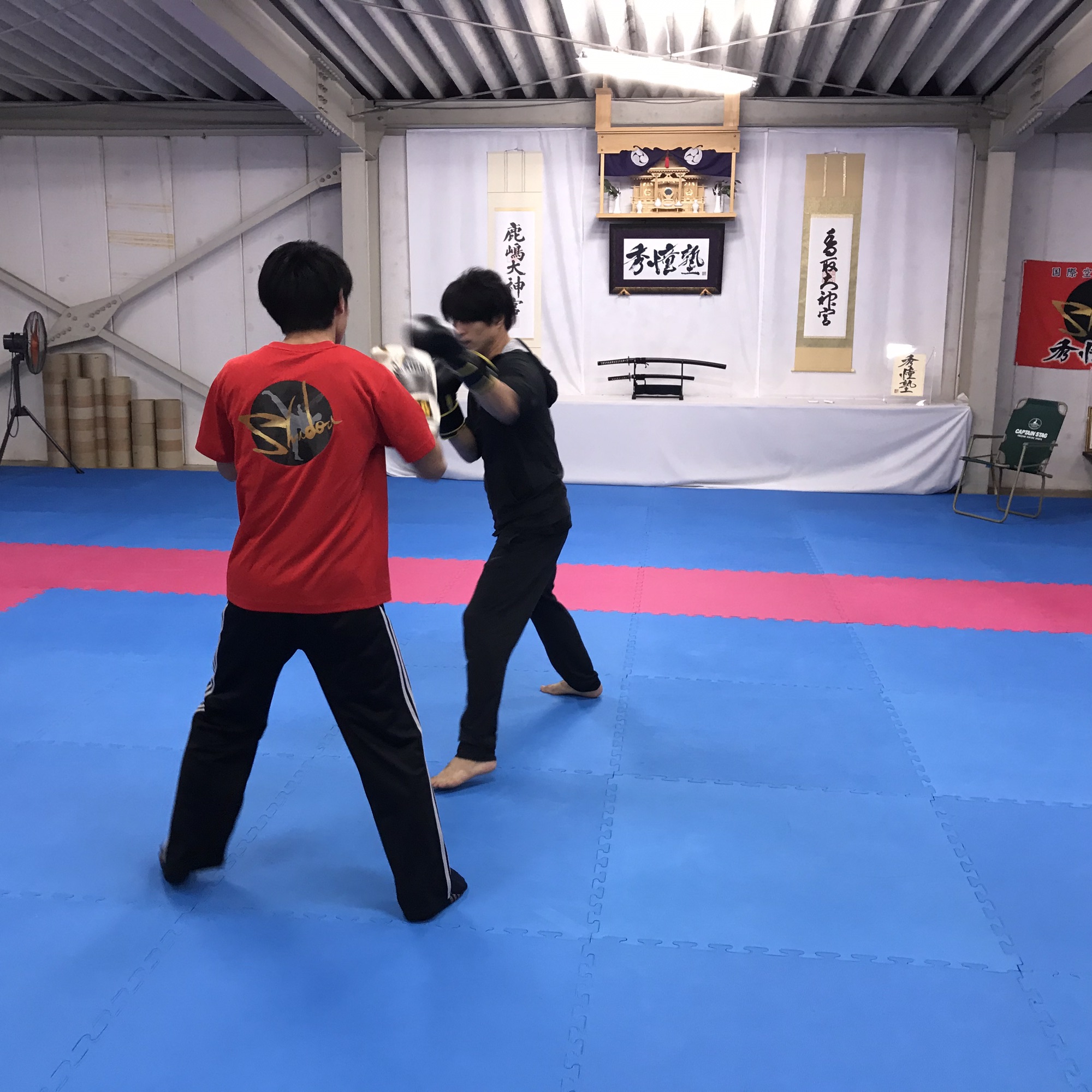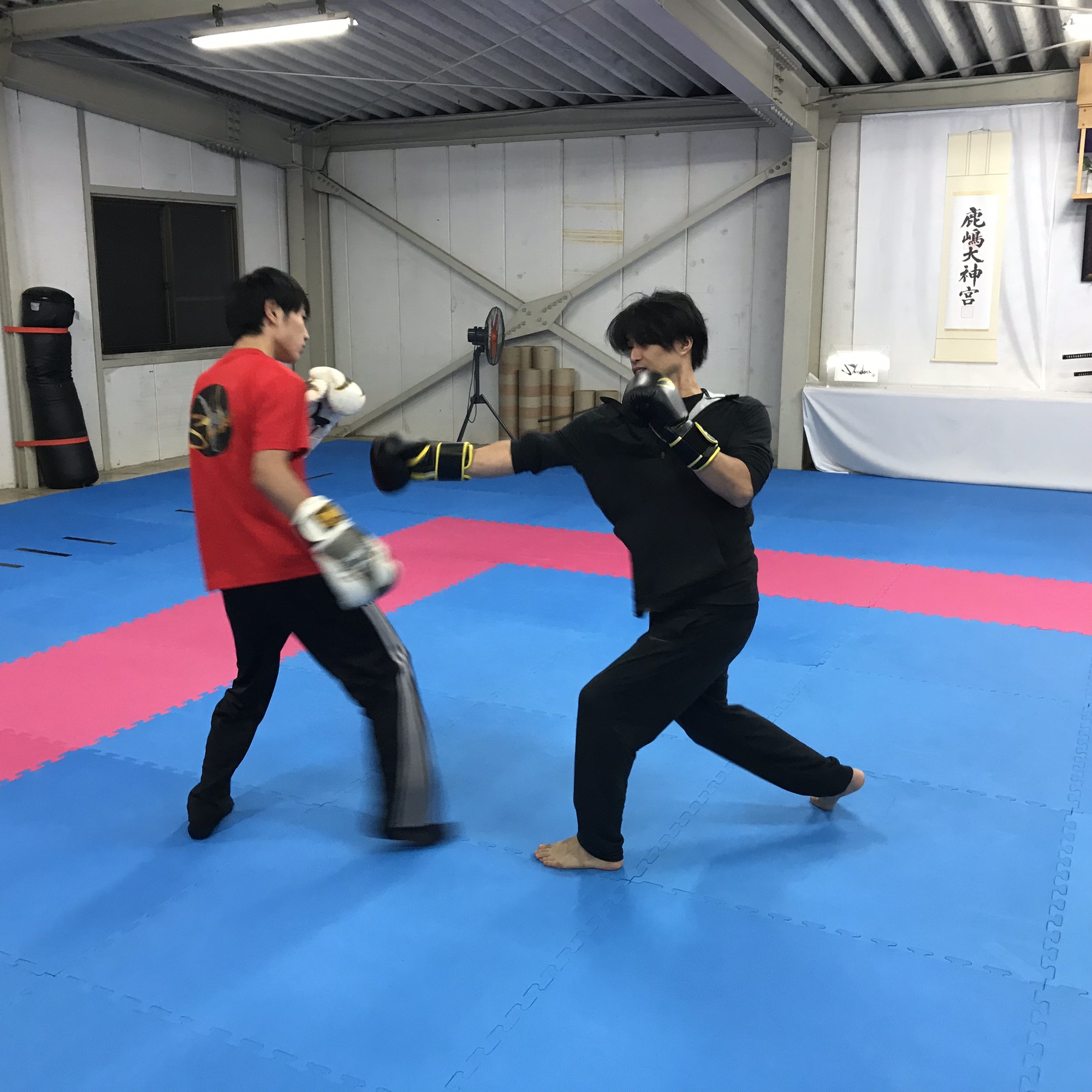 で!なぜかキックボクシングをして