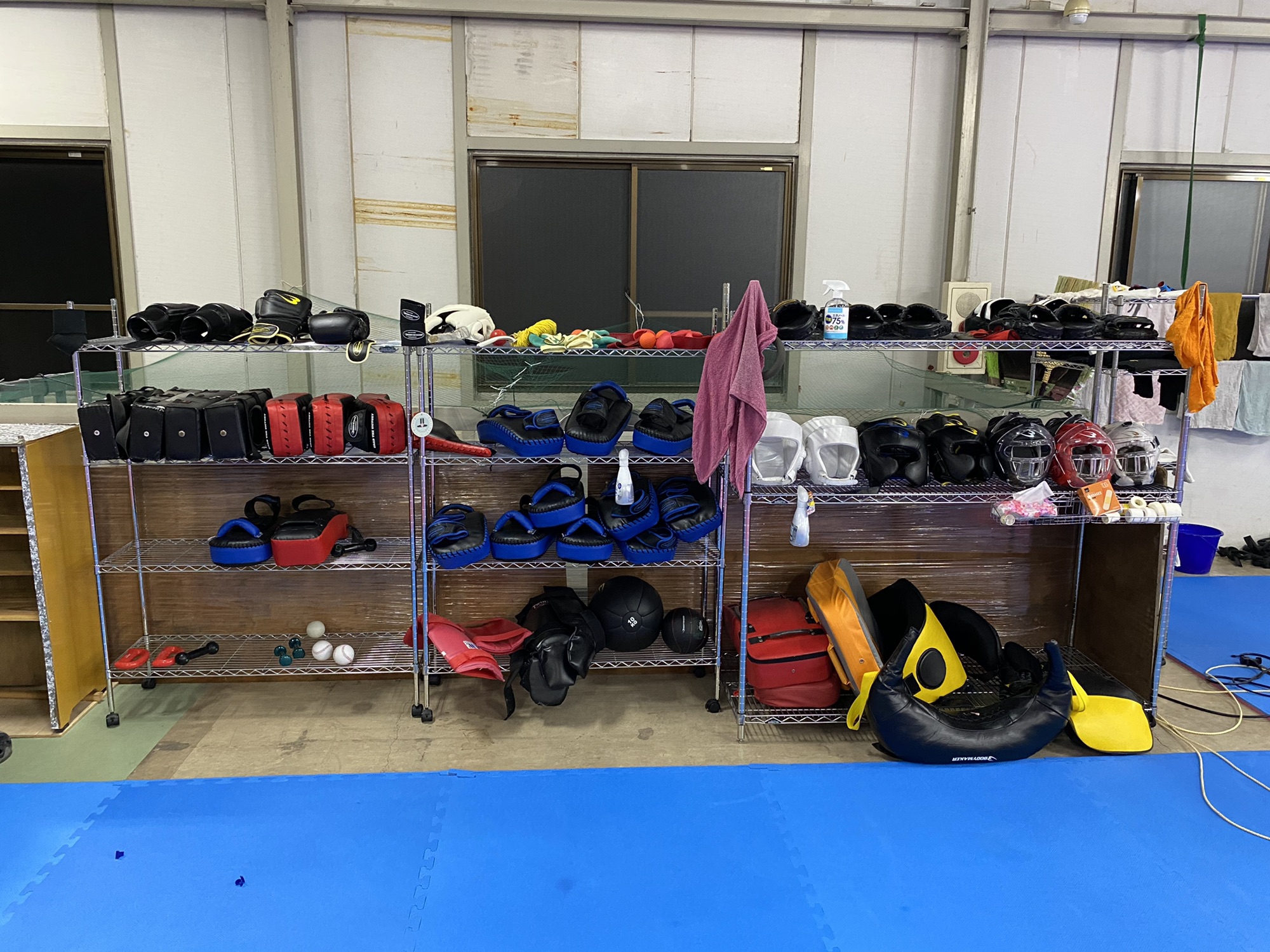 道場の床のマットやミット類は