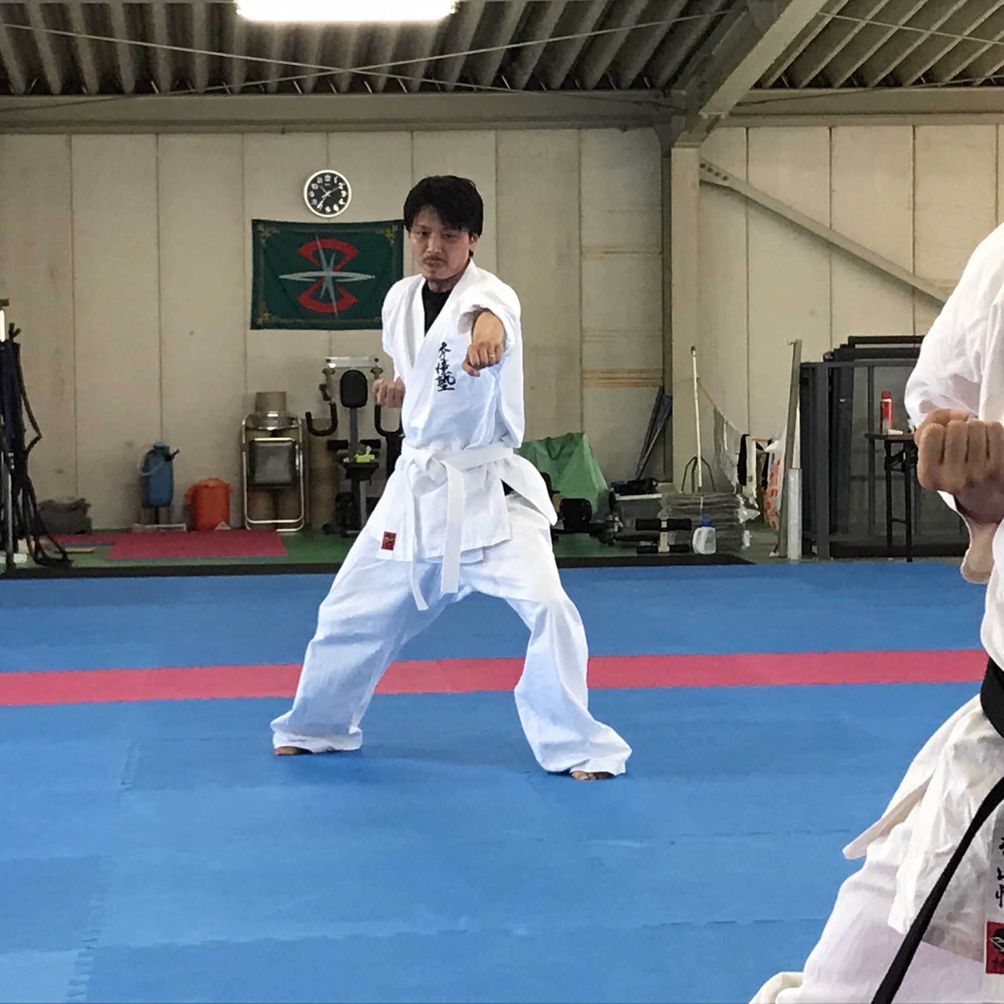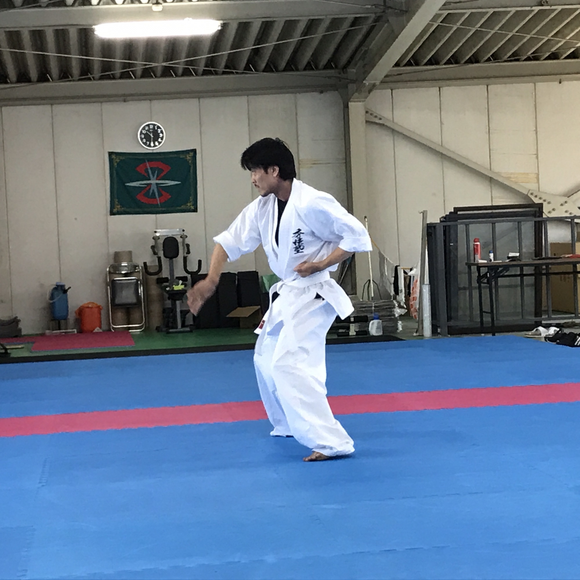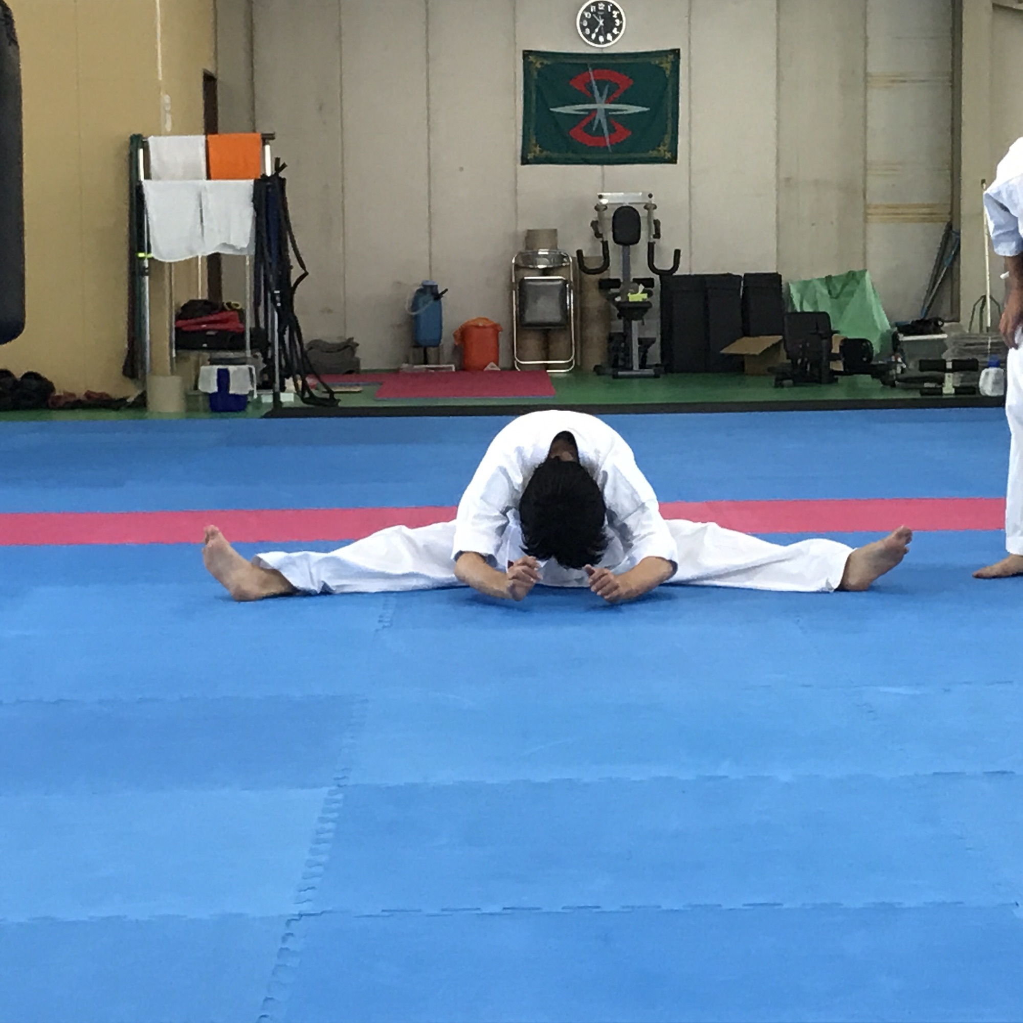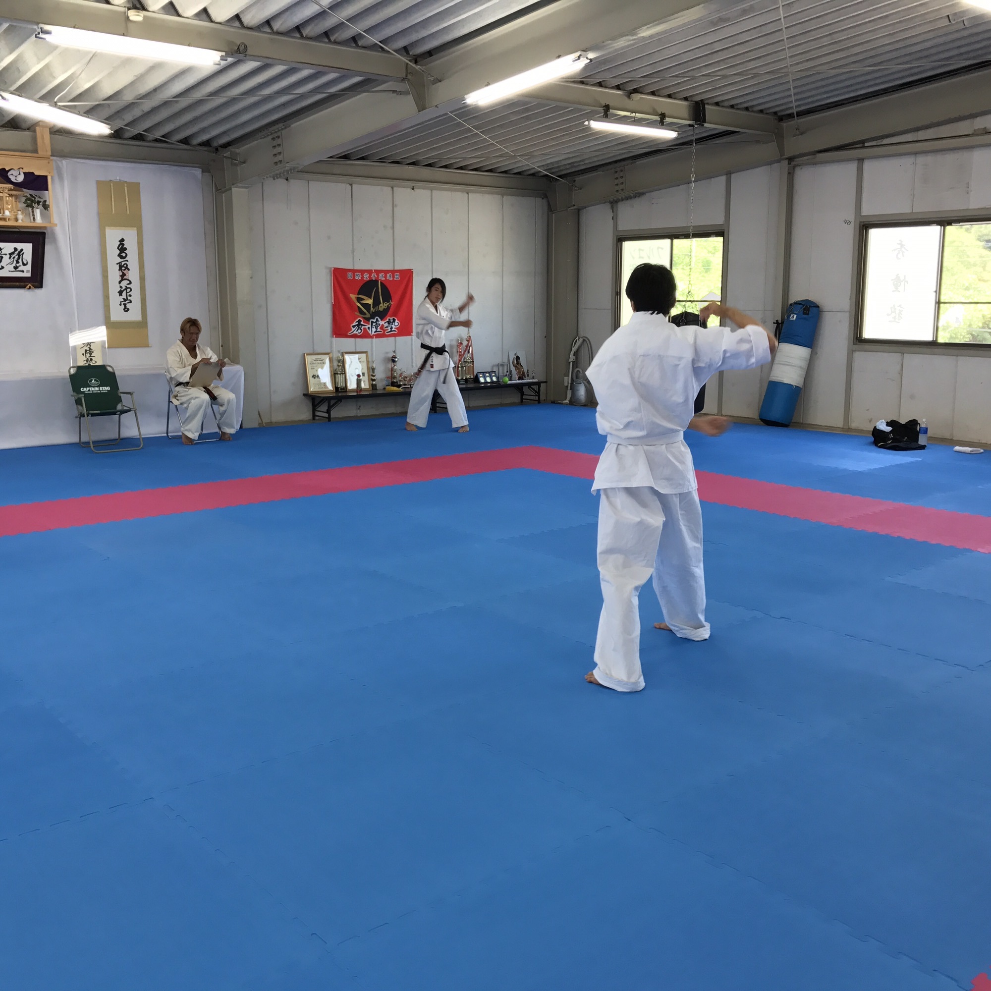 見せた事のない緊張(>_<) 体力測定、柔軟、型、組手、全ての 工程をやり遂げてやっと笑顔が戻った (^_^) 結果は後日、乞うご期待(՞ټ՞☝