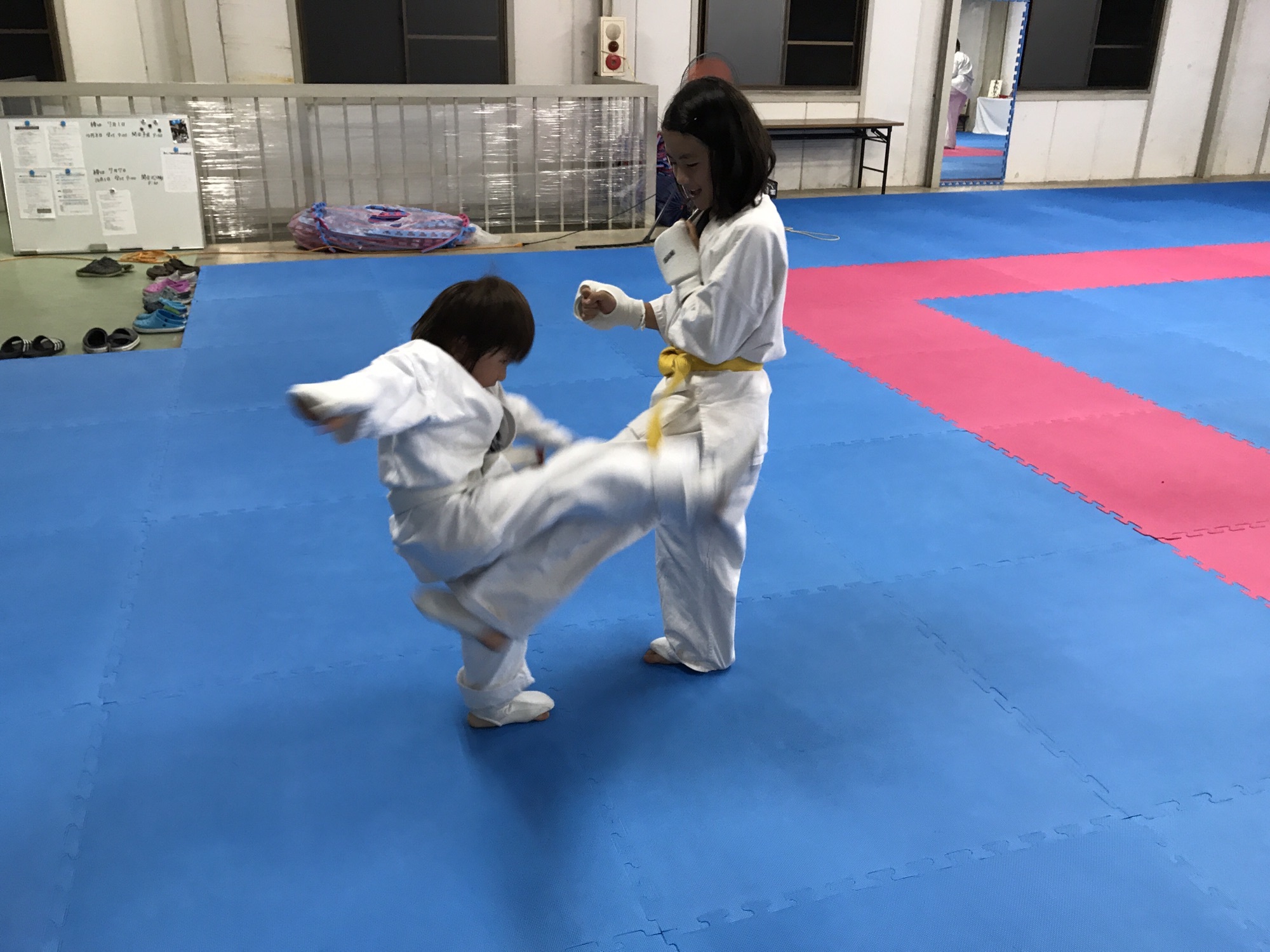 今日の稽古は突き(パンチ)蹴り(キック)の