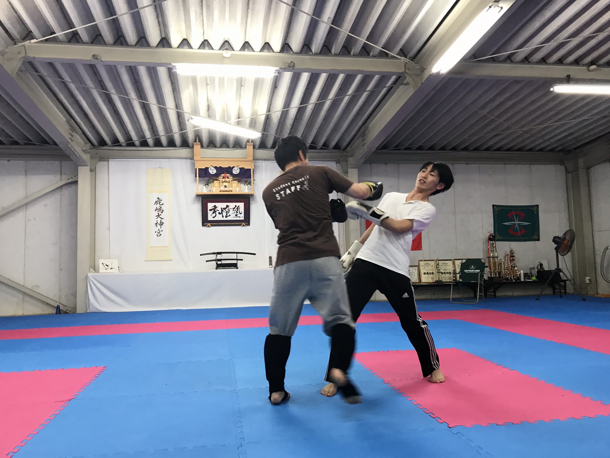 空手部の大屋さんが自主稽古に