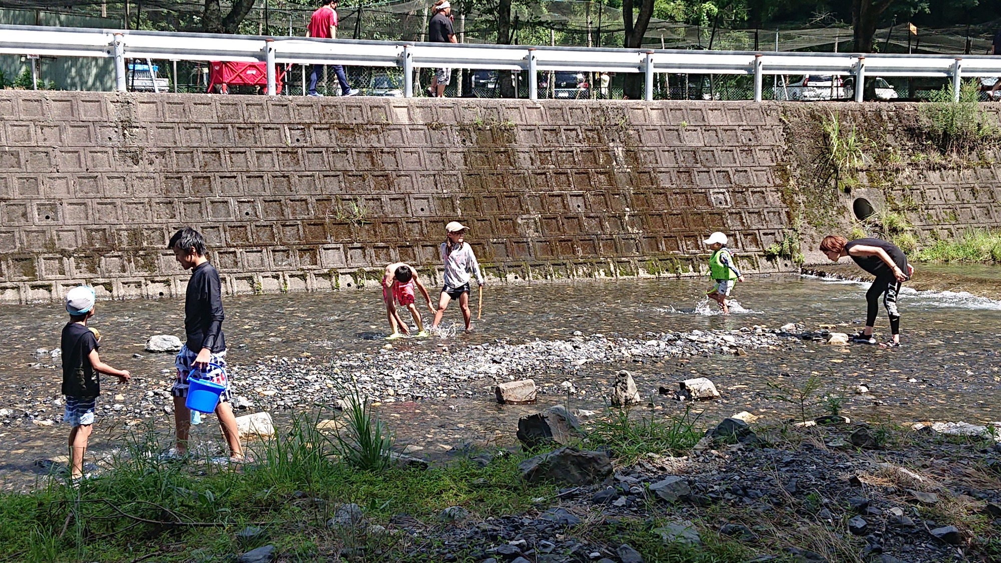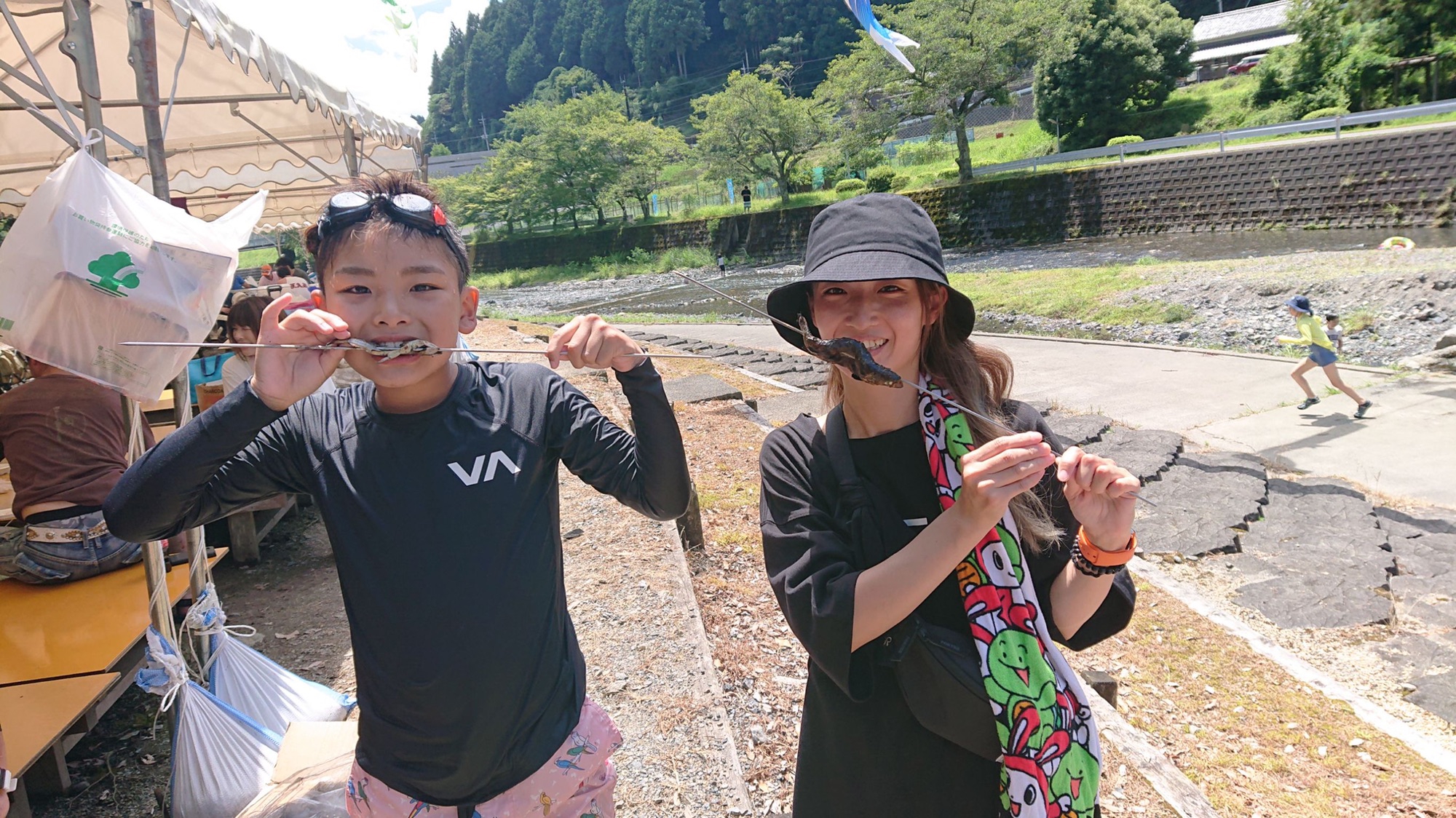 そして子供達な鮎、岩魚、ニジマスのつかみ取りをしてみんなで塩焼きにして
